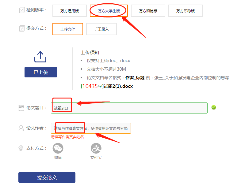 第三步、上傳論文,填寫論文基本信息。