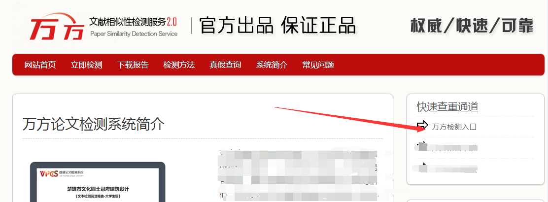 第一步:進入萬方論文查重官網入口www.blueselcommercialsolar.com 進入網站后,點擊“萬方檢測入口”。
