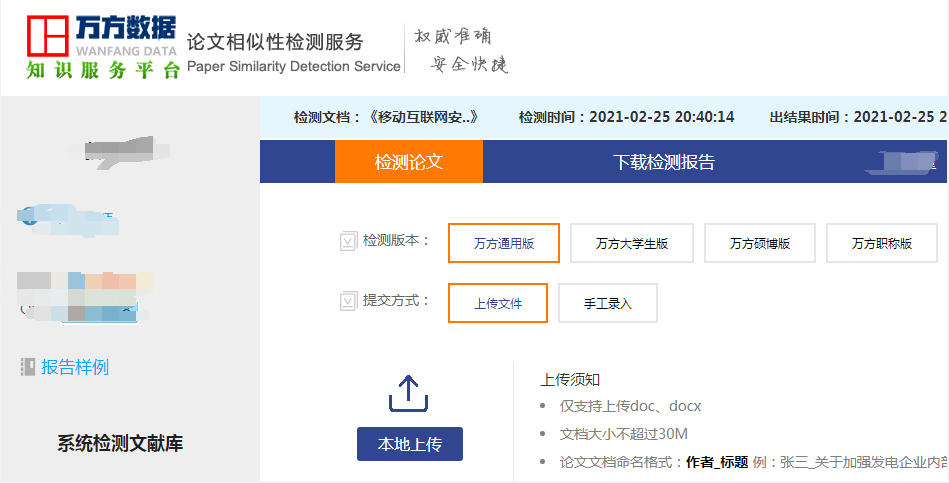 第二步:選擇正確的檢測版本。如果是職稱期刊論文,用于發表就選擇職稱版;如果是畢業論文,不同的層數選擇不同的版本。如果選擇錯誤,結果可能不一樣,慎選。